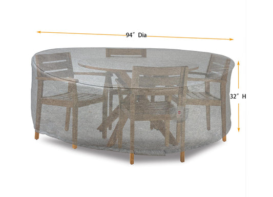 Premium Heavy-Duty Round Dining Set Cover - 3-Layer Water & UV-Resistant, Platinum Series, 94''Dia x 32"H for Outdoor Patio Furniture