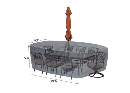 Shield Mercury Cover for 585 Fits Medium Oval/Rectangle Table & Chairs w/8 ties, velcro closure, elastic & spring cinch lock